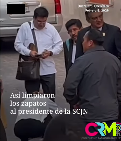 Así le limpian los zapatos al presidente de la Suprema Corte de Justicia de la Nación, Hugo Aguilar Ortiz, en tiempos...