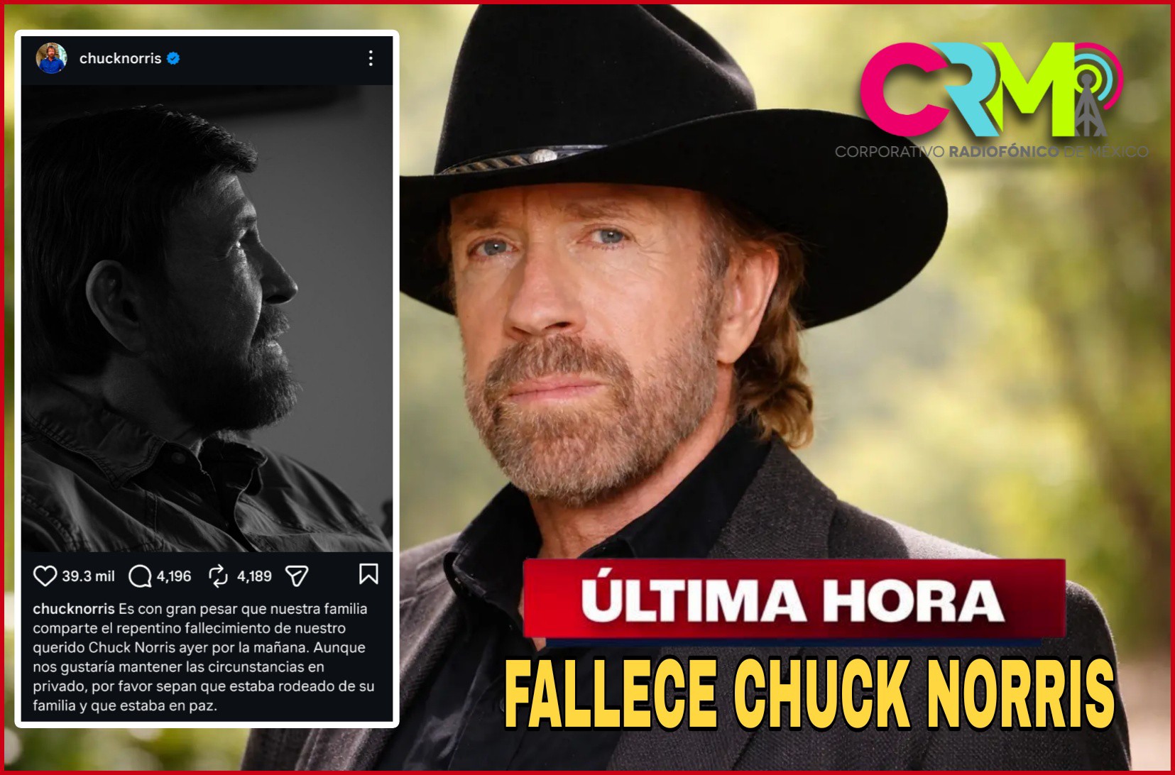 El actor Chuck Norris a fallecido.
