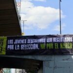 Colocan mensajes sobre la delincuencia en el país camino al Estadio Azteca.