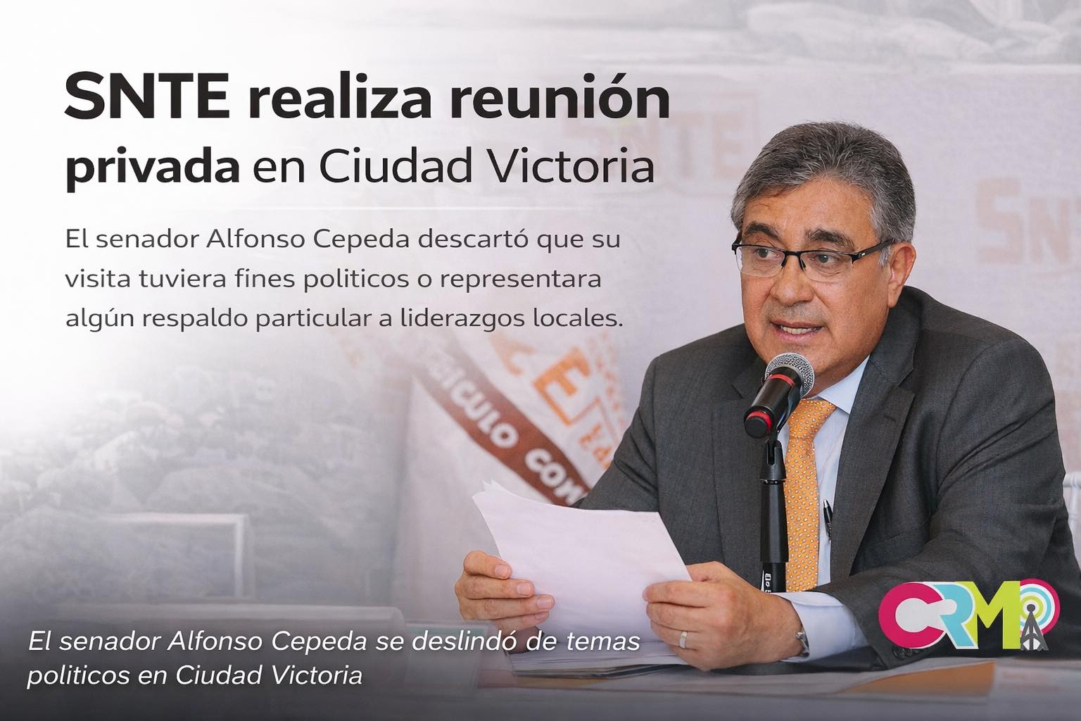 ealiza SNTE reunión privada en Ciudad Victoria; el senador Alfonso Cepeda descartó que su visita tuviera fines políticos o representara algún respaldo particular a liderazgos locales.