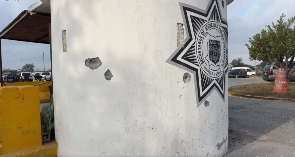 Así quedó la Secretaria de Seguridad Publica de Matamoros, ante la situación de riesgo registrada por la madrugada en la ciudad.