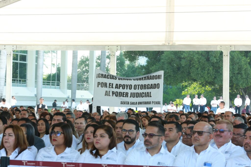 Ciudad Victoria, Tamaulipas.- La refundación del Poder Judicial en Tamaulipas es una realidad y los resultados son positivos, afirmó el gobernador Américo Villarreal Anaya, quien reiteró todo su respaldo para fortalecer un sistema judicial que permita que la justicia llegue a tiempo y tribunales que colaboren en un combate sin tregua a la impunidad, «que impere un estado de Derecho pleno», dijo.