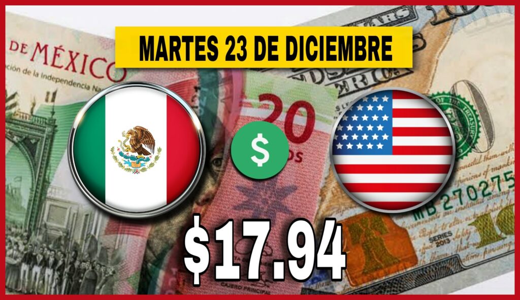 Amanece este 23 de diciembre el dólar en 17 pesos con 94 centavo.