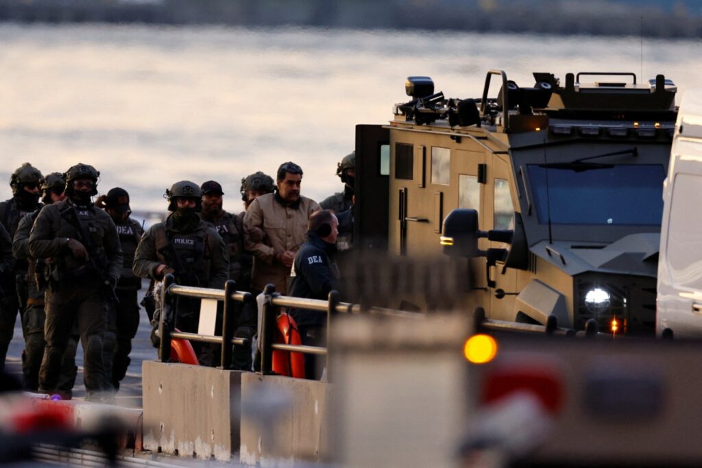 El presidente venezolano, Nicolás Maduro, es escoltado desde un helicóptero el lunes, antes de su comparecencia programada ante el Tribunal Federal Daniel Patrick de Manhattan, donde enfrenta cargos que incluyen narcotráfico, conspiración, tráfico de drogas, lavado de dinero y otros.
