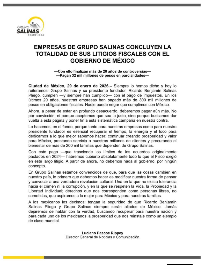Ricardo Salinas le paga al SAT e informa que ya no le debe nada al gobierno.