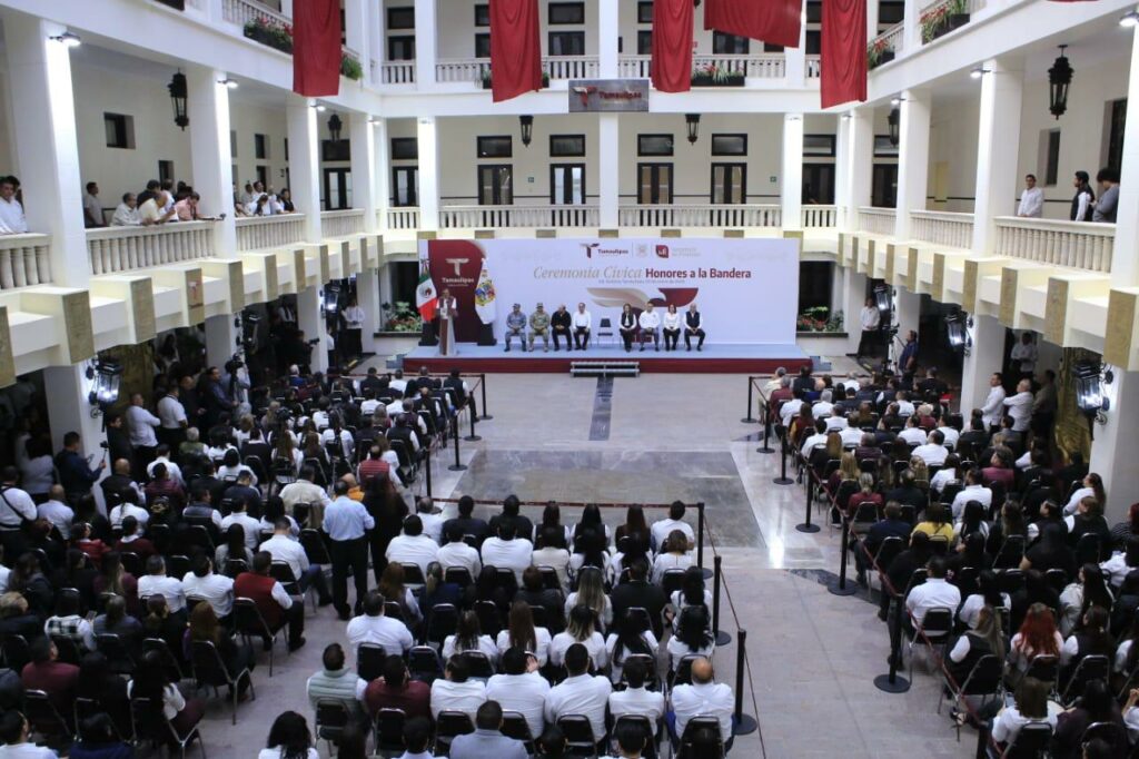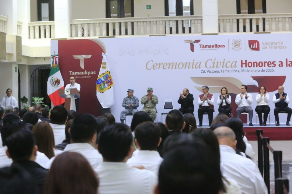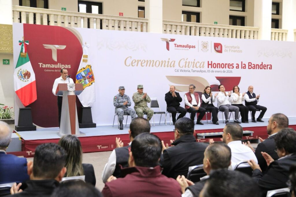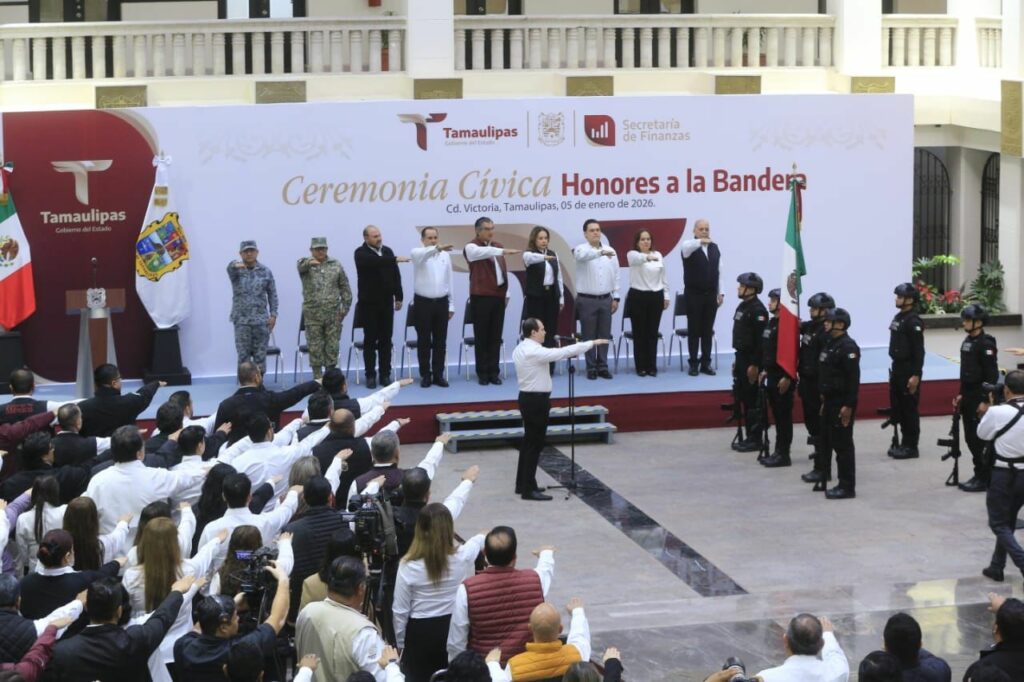 Al presidir la primera ceremonia cívica de honores del año nuevo, en la explanada de Palacio de Gobierno, el jefe del Ejecutivo estatal destacó que en Tamaulipas existen condiciones favorables para continuar nuestra transformación, aun frente a un entorno internacional en el que diferencias y divisiones políticas antagónicas han sembrado discordia e incertidumbre, generando hostilidades que han rebasado el terreno de la diplomacia, causando sufrimientos a millones de personas y familias que son arrastradas a conflictos de orden geopolítico, contrarios al derecho, a la razón y a la empatía que debe existir entre semejantes.